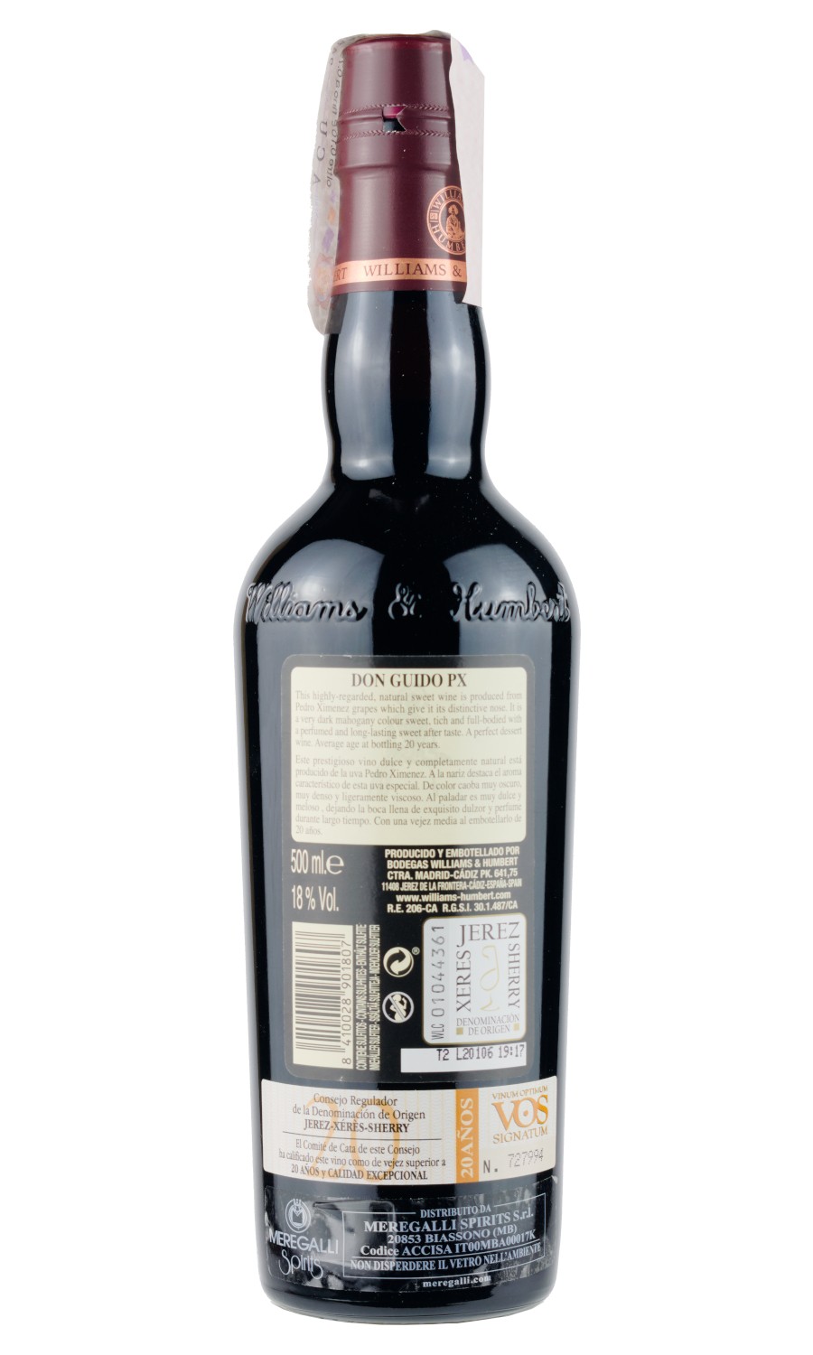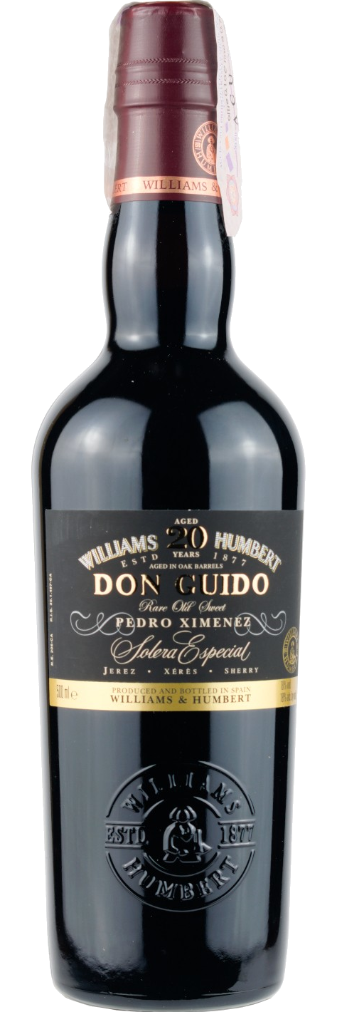 Sherry Don Guido Pedro Ximenez 20 Anni William & Humbert è un vino liquoroso spagnolo di straordinaria complessità , perfetto in abbinamento con dessert al cioccolato e dolci a base di frutta secca o caramello. Prodotto nella regione di Jerez de la Frontera, rappresenta una delle massime espressioni della tradizione vinicola andalusa.